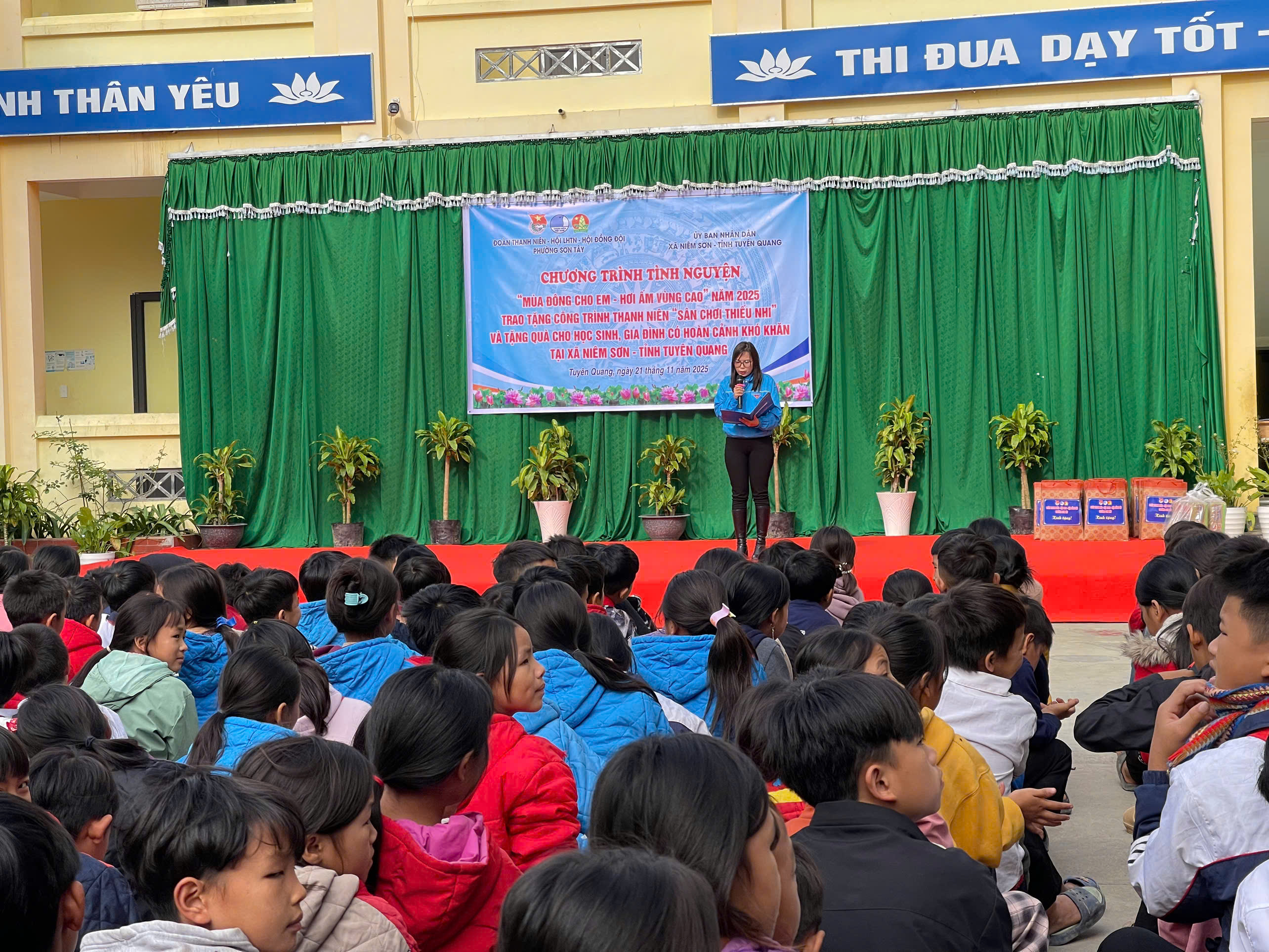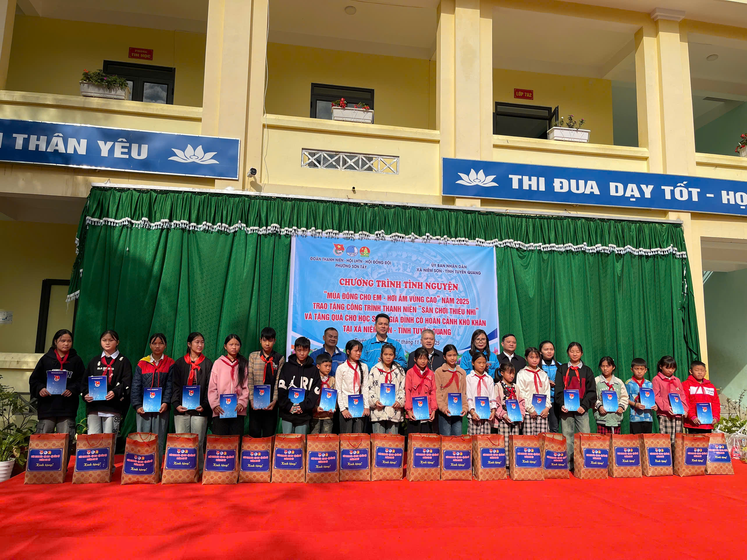 Ngày 21/11/2025, Đoàn TNCS Hồ Chí Minh, Hội LHTN Việt Nam và Hội đồng Đội phường Sơn Tây, do đồng chí Nguyễn Ngọc Thúy – Ủy viên Ban Thường vụ Đoàn phường – làm Trưởng đoàn, đã tổ chức Chương trình tình nguyện “Mùa đông cho em – Hơi ấm vùng cao” tại Trường PTDT BT THCS Niêm Tòng, xã Niêm Sơn.