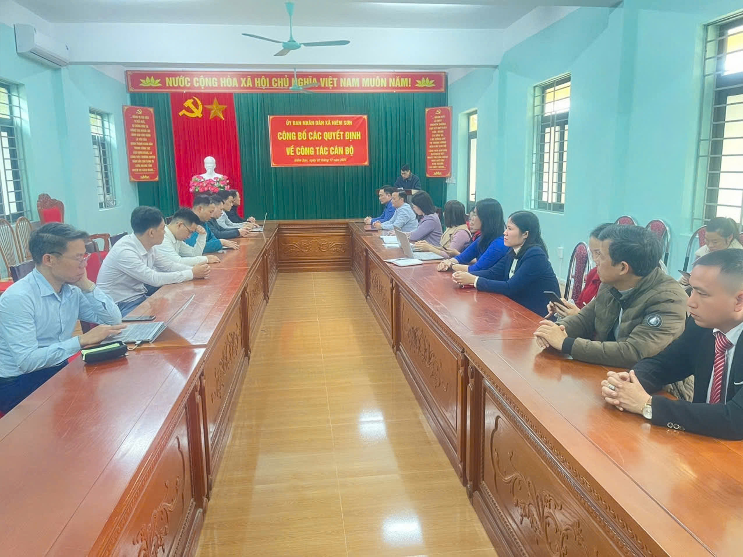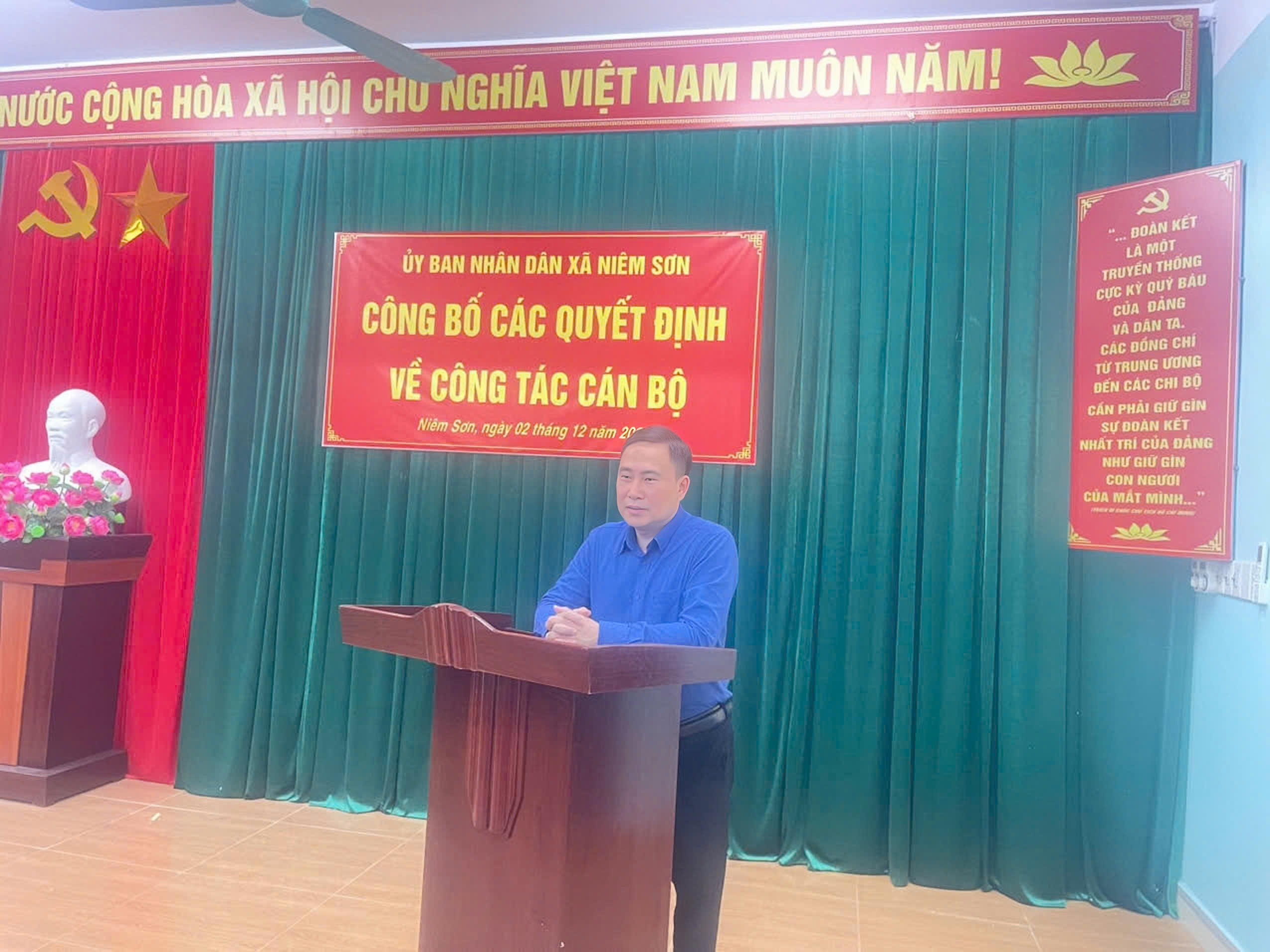 Tại Hội nghị, đại diện lãnh đạo Ủy ban nhân dân xã đã công bố Quyết định thành lập Trung tâm Dịch vụ công xã Niêm Sơn và công bố các Quyết định về công tác cán bộ của Trung tâm Dịch vụ công, bao gồm việc phân công lãnh đạo Trung tâm và bố trí cán bộ, công chức làm việc tại Trung tâm.