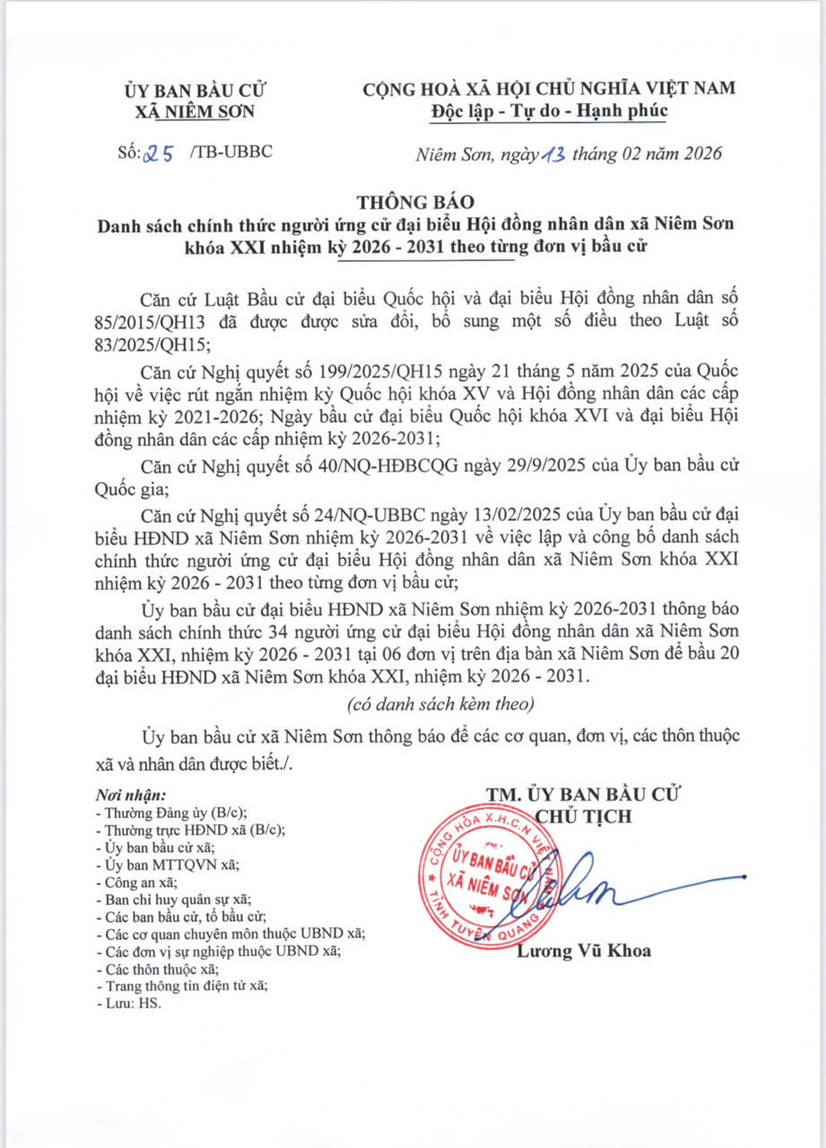 Ghi rõ nguồn 'Trang thông tin điện tử xã Niêm Sơn' hoặc 'niemson.tuyenquang.gov.vn' khi phát hành lại thông tin từ các nguồn này.