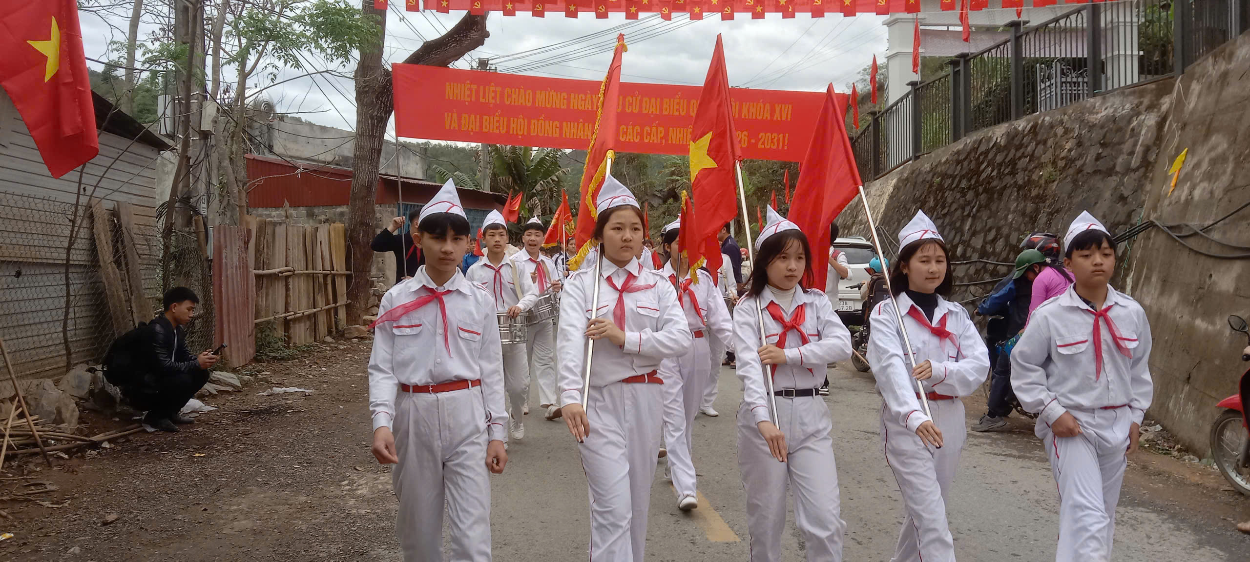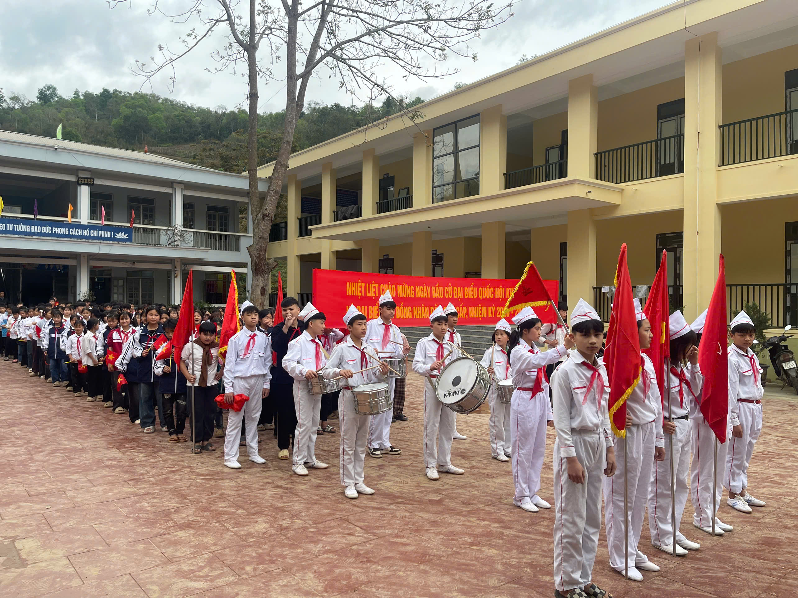 Tại Trường Phổ thông Dân tộc bán trú THCS xã Niêm Tòng, không khí hướng tới ngày bầu cử cũng diễn ra sôi nổi không kém. Hàng trăm cán bộ giáo viên, cùng các em học sinh cũng đồng loạt diễu hành cổ động tuyên truyền, hoạt động không chỉ thể hiện tinh thần đoàn kết, nhiệt huyết của tuổi trẻ mà còn truyền tải thông điệp ý nghĩa về trách nhiệm công dân, khơi dậy niềm tự hào và ý thức tham gia xây dựng Nhà nước của nhân dân, do nhân dân và vì nhân dân.
