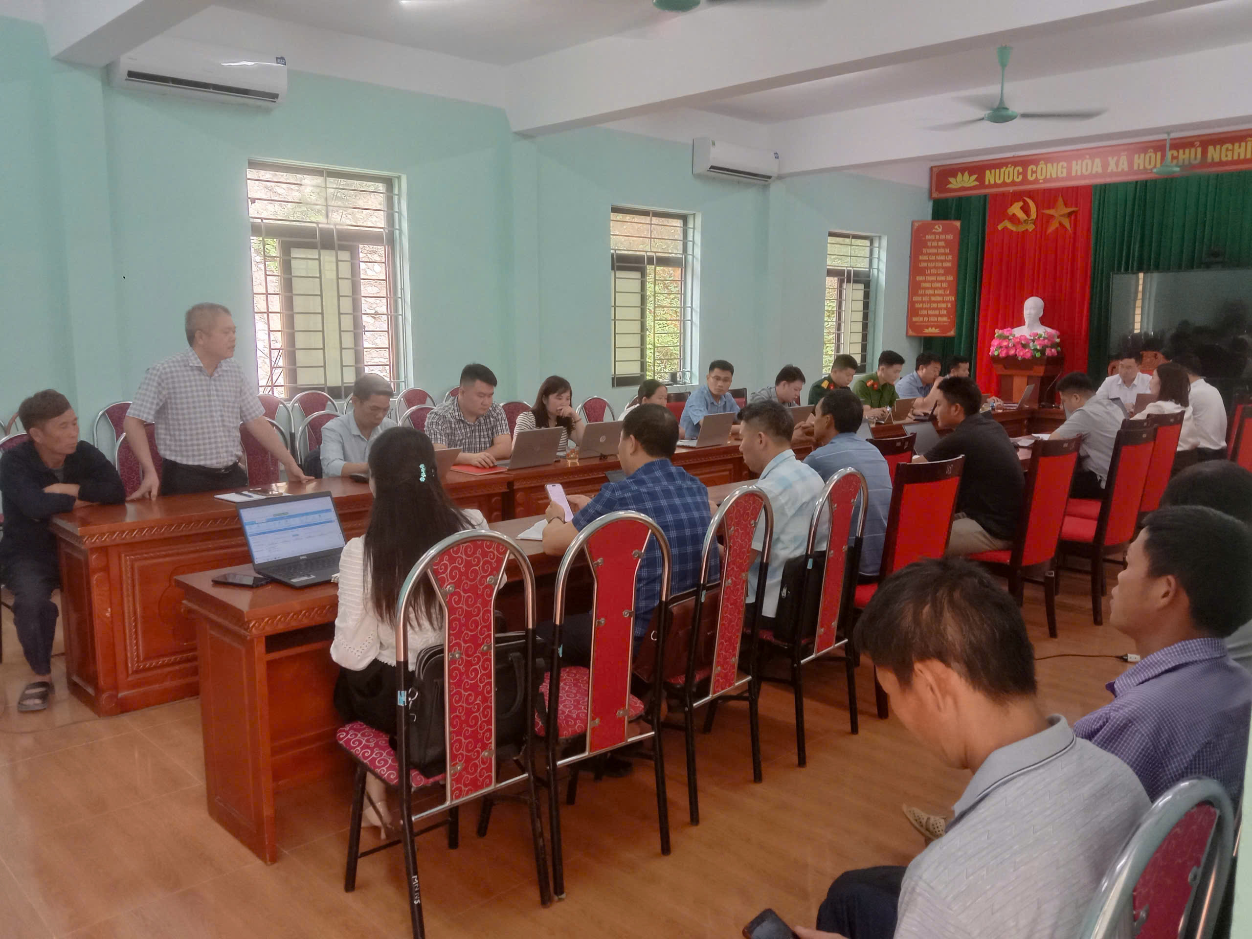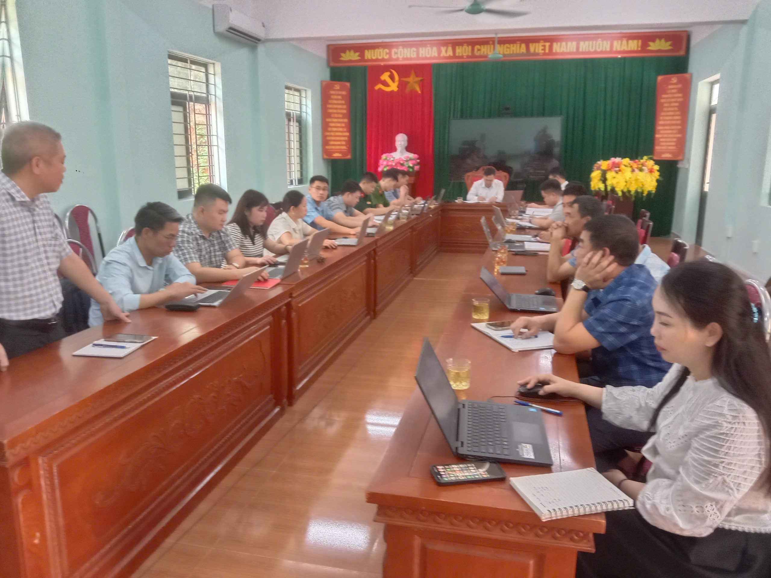 Hội nghị do đồng chí Lương Vũ Khoa – Chủ tịch UBND chủ trì. Tham dự còn có Thường trực HĐND xã; các đồng chí Phó Chủ tịch UBND xã; đồng chí Chủ tịch Ủy ban MTTQ xã; Trưởng Công an xã; Chỉ huy trưởng Ban Chỉ huy Quân sự xã; lãnh đạo các phòng, ban chuyên môn xã; Lãnh đạo các cơ quan, đơn vị: Trung tâm Phục vụ hành chính công; Trung tâm Dịch vụ công; Trạm Y tế xã; 06 đơn vị Trường học; - Trưởng thôn 20 thôn ; - Lãnh đạo, chuyên viên Văn phòng HĐND – UBND, cùng toàn thể cán bộ, công chức, chuyên viên liên quan.