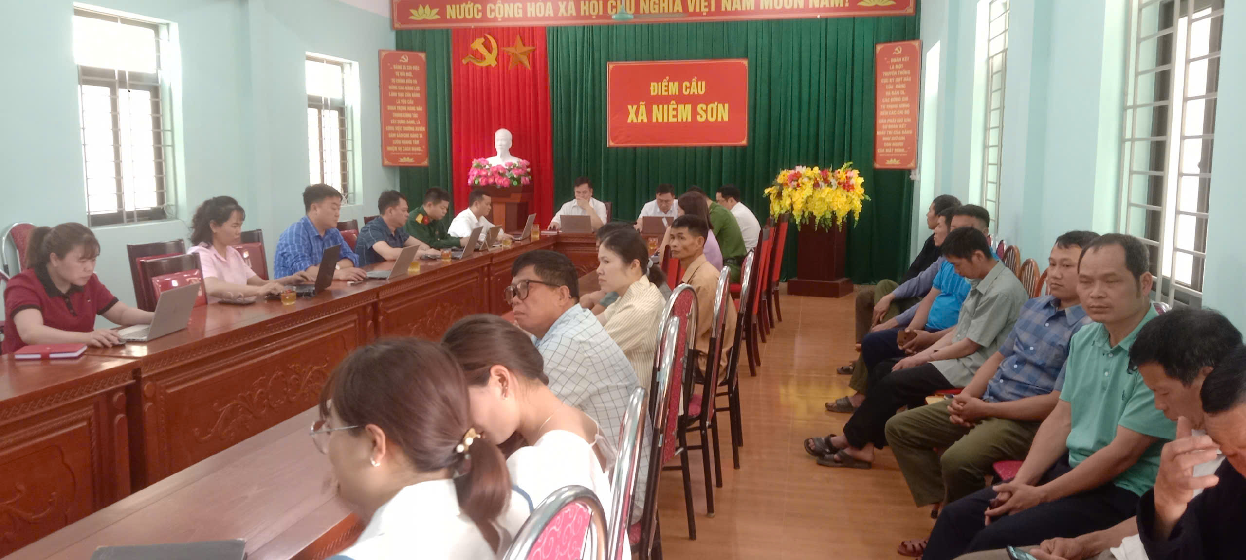 Tại điểm cầu xã Niêm Sơn, tham dự Hội nghị có đồng chí Phạm Văn Hợp, Bí thư Đảng ủy, Chủ tịch HĐND xã, đồng chí Lương Vũ Khoa, Phó bí thư, Chủ tịch UBND xã, Ban Chỉ đạo bầu cử, Ủy ban bầu cử, lãnh đạo Đảng ủy, HĐND, UBND, MTTQ và các đoàn thể xã.