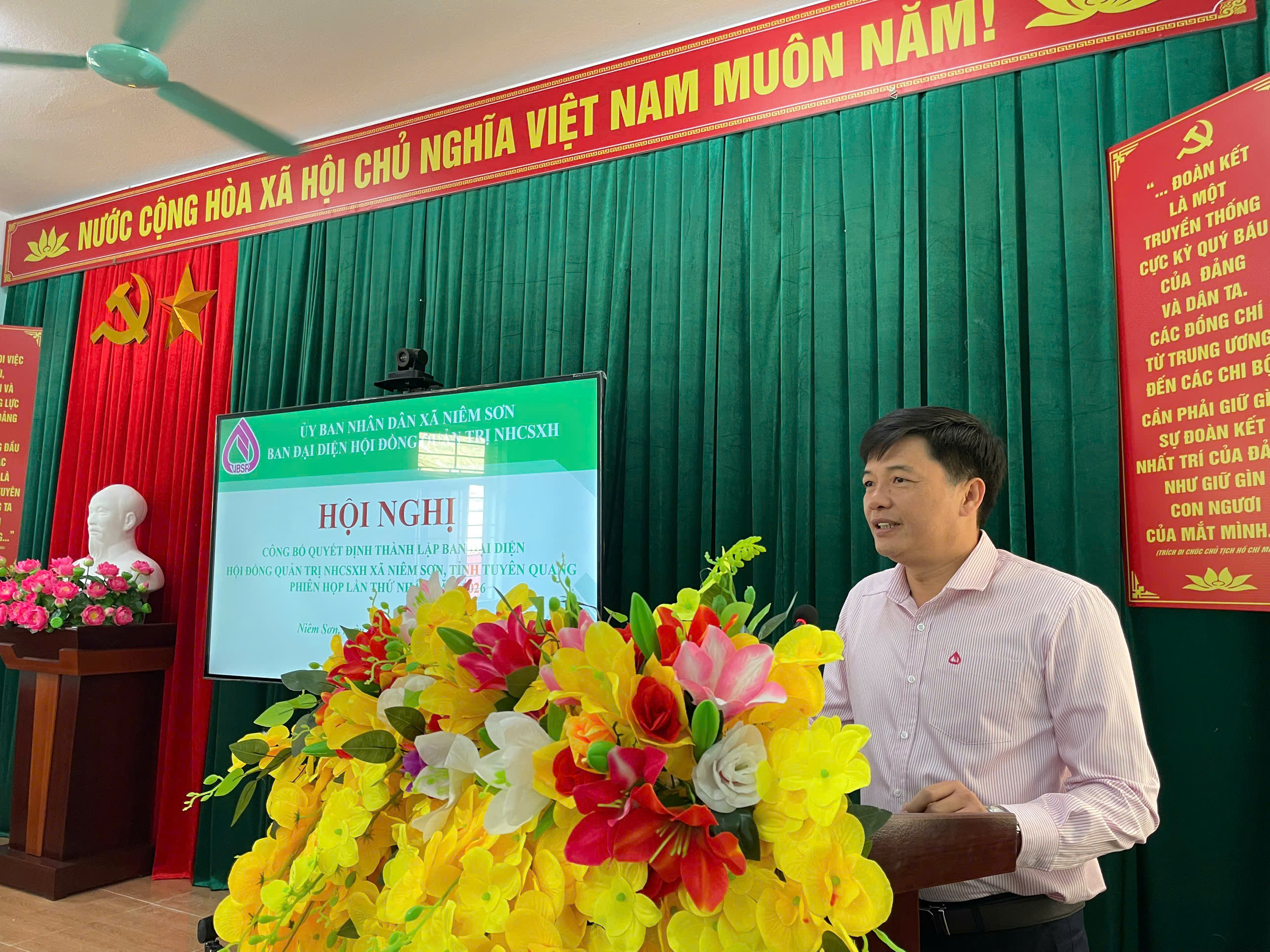 Về dự và chỉ đạo về phía NHCSXH tỉnh có đồng chí Đỗ Ngọc Tuấn phó giám đốc chi nhánh NHCSXH tỉnh Tuyên Quang, về phía xã có đồng chí Lương Vũ Khoa Chủ tịch UBND xã, trưởng ban Hội đồng quản trị NHCSXH, tham dự hội nghị còn có các đồng chí lãnh đạo Đảng ủy, HĐND, UBND, UB MTTQ và các đoàn thể xã, cùng các đồng chí thành viên Ban đại diện NHCSXH xã.
