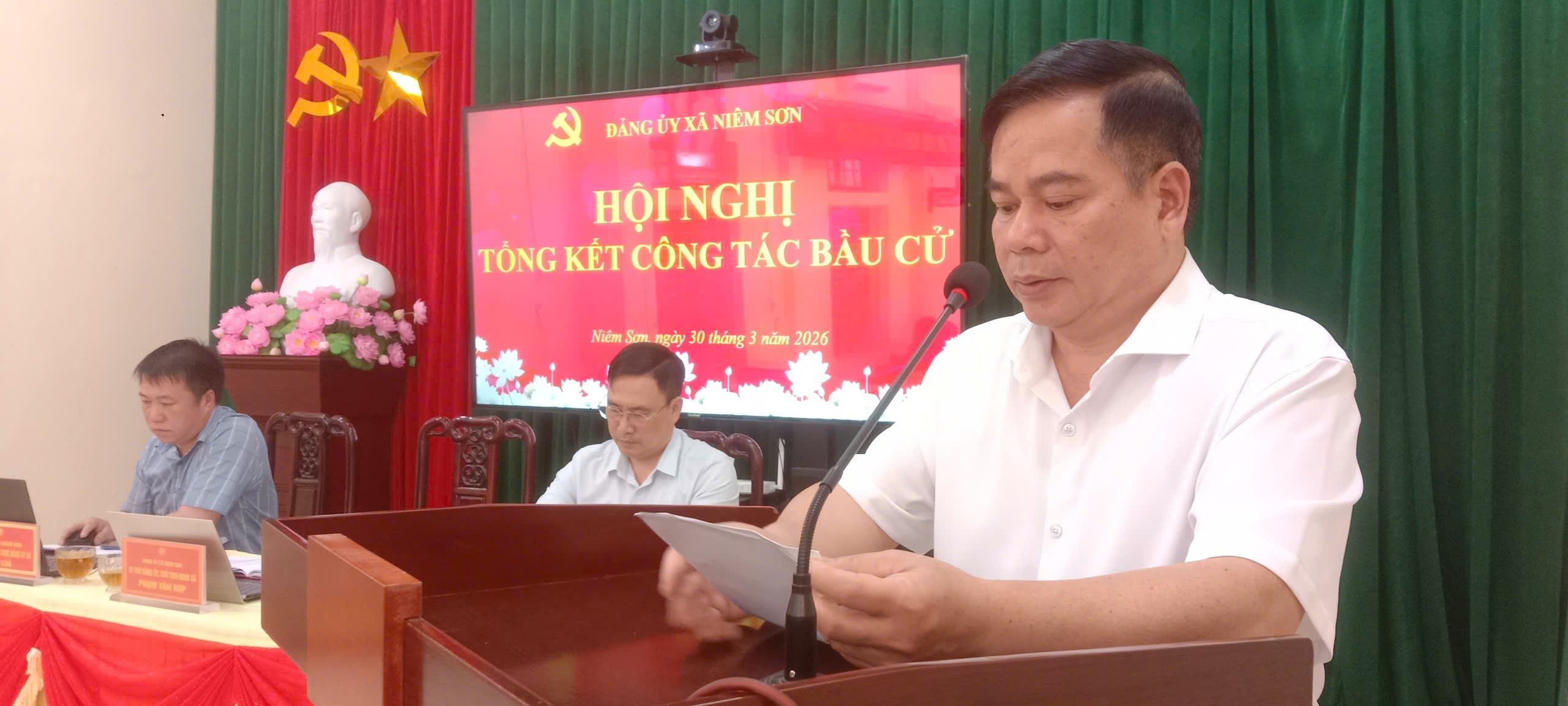 Dự hội nghị có đồng chí Phạm Văn Hợp, Bí thư Đảng ủy, Chủ tịch HĐND xã cùng các đồng chí Thường trực Đảng ủy, HĐND, UBND, Ủy ban MTTQ xã; lãnh đạo các phòng, ban, cơ quan, đơn vị, các tổ bầu cử.